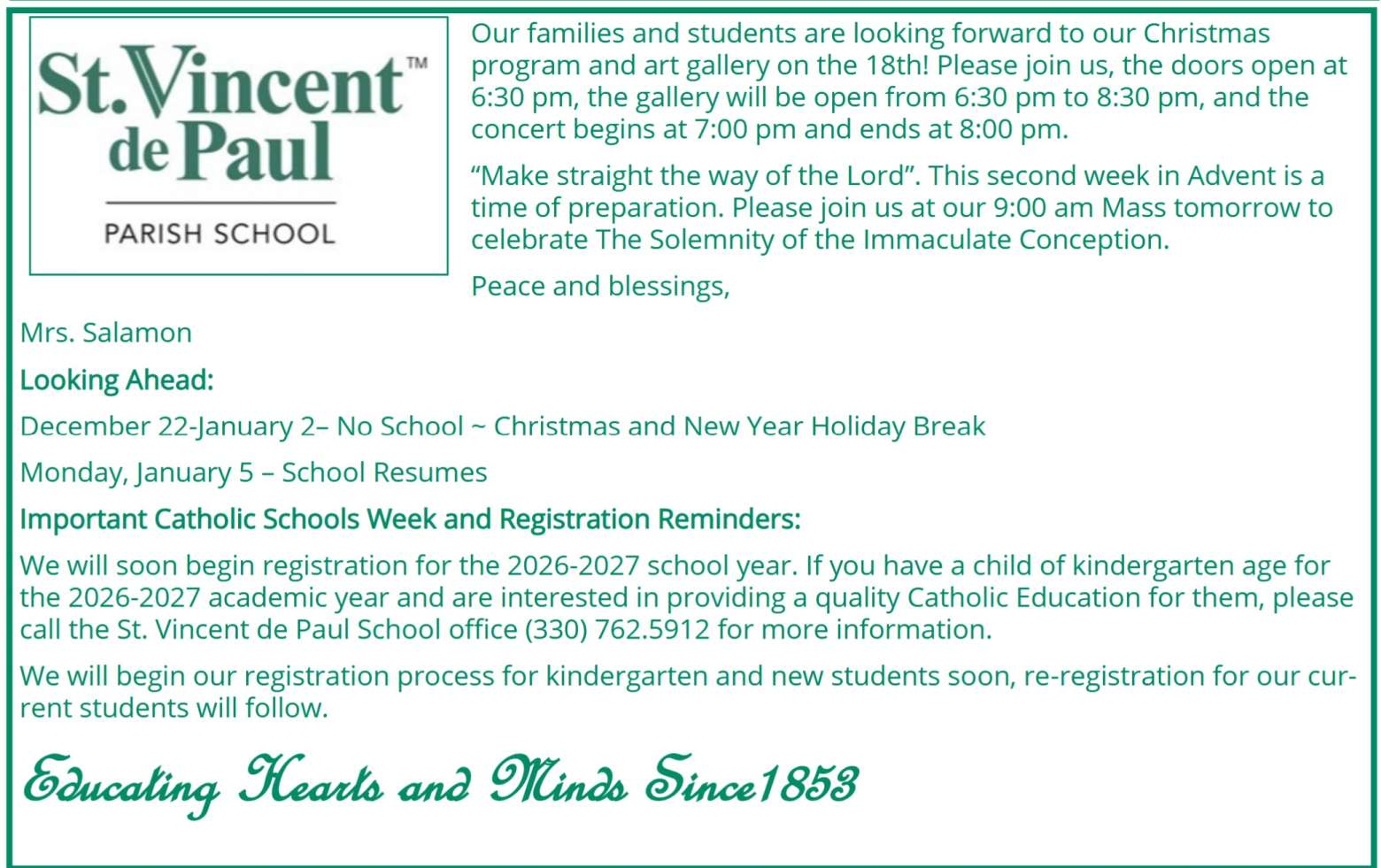 8:30 am |For the People of Saint Vincent de Paul Parish